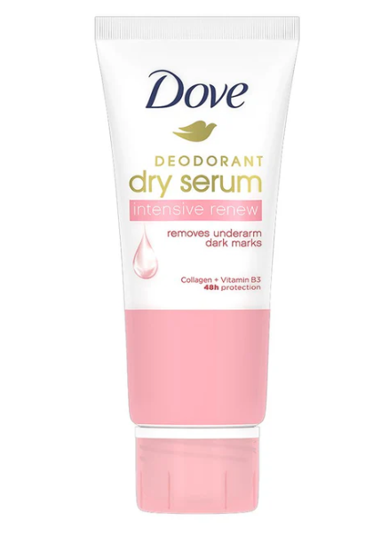 Reveal beautifully smooth and even-toned underarms with Dove Deodorant Dry Serum Intensive Renew Cream (50ml). Formulated with collagen and Vitamin E, this innovative dry serum provides 24-hour sweat and odor protection while nourishing your skin at the same time. Its quick-absorbing, non-sticky texture ensures your underarms feel dry, smooth, and cared for all day long.