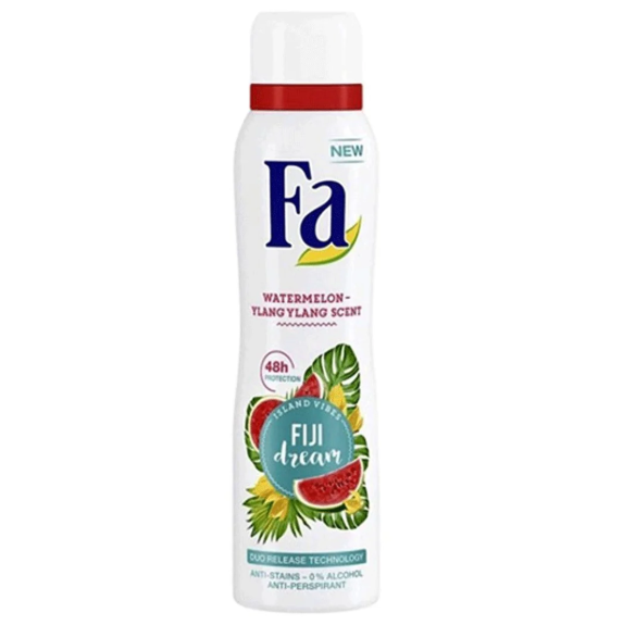 Stay fresh, confident, and beautifully scented all day with Fa Fiji Dream Watermelon Ylang Ylang Scent Antiperspirant Spray, 200ml. Inspired by tropical paradise vibes, this premium antiperspirant combines the juicy sweetness of watermelon with the exotic floral elegance of ylang ylang to deliver a refreshing fragrance experience like no other.