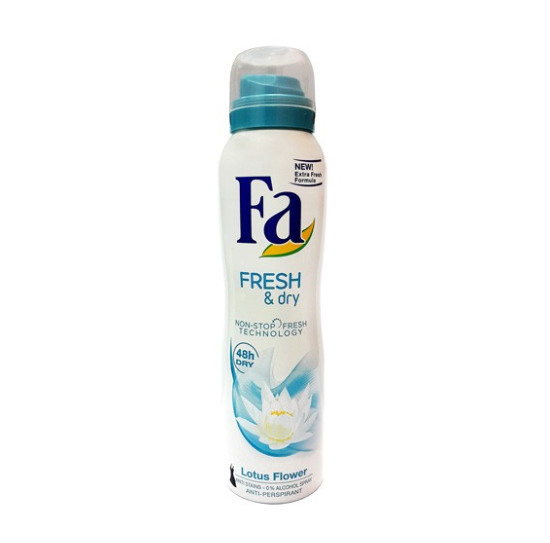 Stay fresh and dry with Fa Fresh & Dry Lotus Flower Antiperspirant Spray 200ml. Enjoy 48-hour protection, a refreshing floral scent, and long-lasting freshness for all-day confidence.