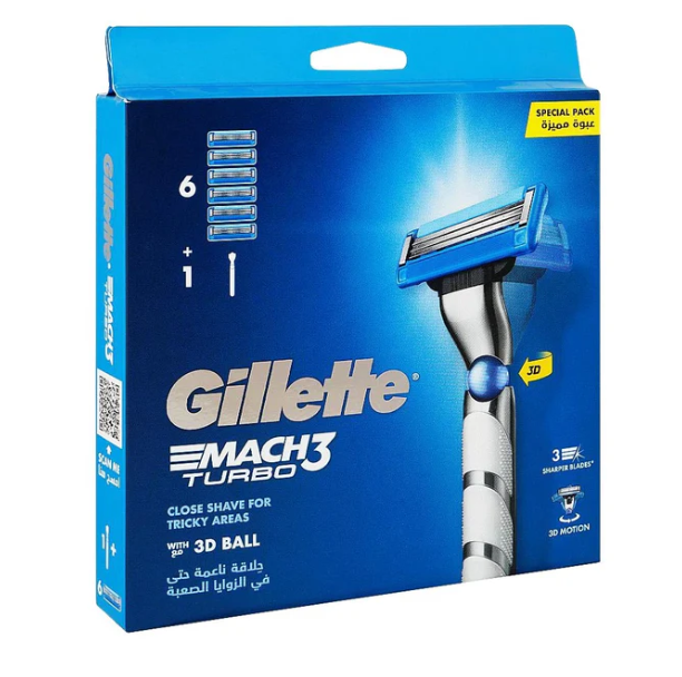 Experience a classic, smooth, and long-lasting shave with the Gillette Mach3 Turbo Razor 3D with 6 Extra Blade Refills. Designed for precision and comfort, this premium men’s razor features stronger-than-steel blades that stay sharp longer compared to Blue3, delivering a consistently close shave with fewer strokes.