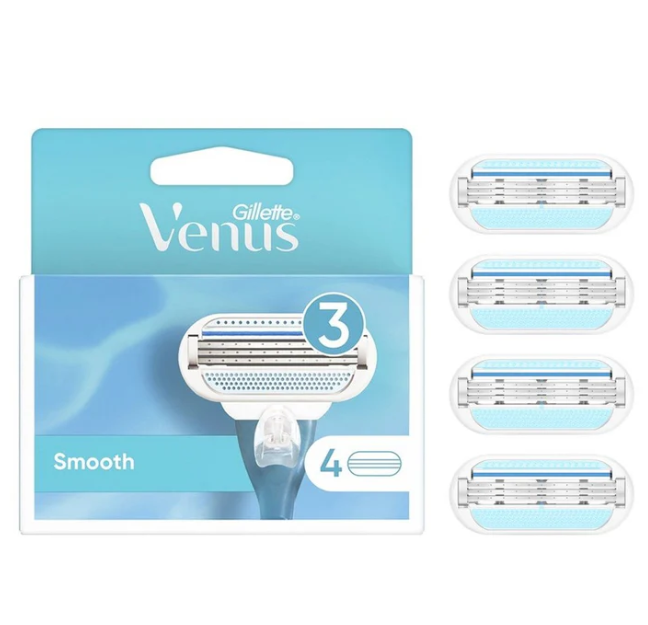 Gillette Venus Smooth 3 Blades Refill, 4 Ct is designed to deliver a smooth, close, and comfortable shaving experience for women. These refill blades are compatible with all Gillette Venus razor handles, making them a convenient and cost-effective grooming solution.