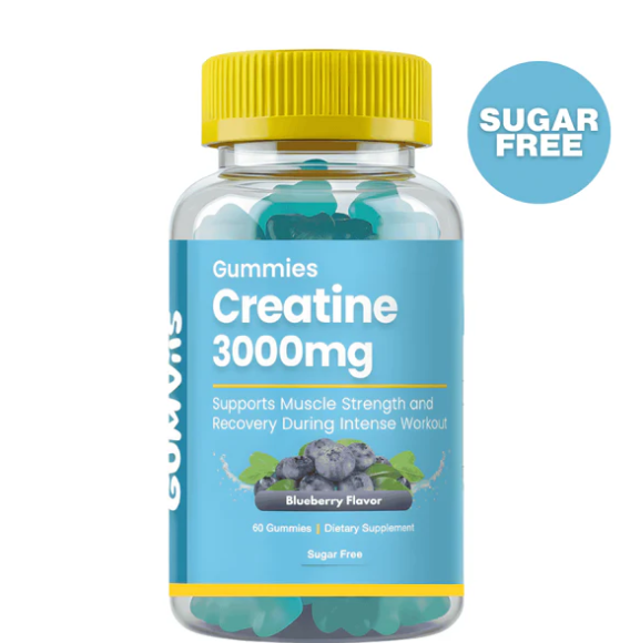 Power up your performance with Gumvits Creatine 3000mg (Blueberry Flavour) Gummies, 60 Ct — a delicious, sugar-free way to support muscle strength, endurance, and recovery. Formulated with high-quality Creatine Monohydrate, these easy-to-take gummies help maximize workout performance while supporting lean muscle growth and cognitive function.
