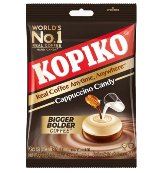 Experience the perfect blend of taste and energy with Kopiko Cappuccino Candy – your coffee moment in candy form!