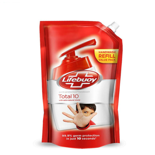 Keep your hands clean and germ-free with Lifebuoy Total 10 Hand Wash Refill, 400ml. Designed for ultimate hygiene, this hand wash provides 99.9% germ protection within just 10 seconds. Its Total 10 formula instantly combats harmful bacteria, while the Active Natural Shield forms a protective barrier on your hands to prevent bacterial infections. Perfect for daily use, it ensures your hands stay clean, healthy, and free from germs. Trusted and proven, Lifebuoy helps maintain personal hygiene effortlessly. Refill your hand wash dispenser with this 400ml pouch and enjoy long-lasting protection for your entire family.