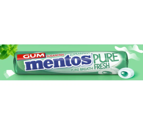 Enjoy long-lasting freshness with Mentos Pure Fresh Spearmint Chewing Gum, 9 Ct. Sugar-free, with a unique liquid center and a convenient 9-piece roll, perfect for on-the-go spearmint flavor anytime.