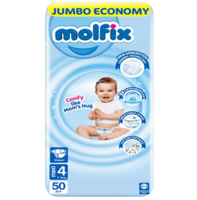 Molfix Diapers Size 4 (Maxi), 50 Count are specially designed to keep your baby dry, comfortable, and free to move all day long. Made with utmost care, Molfix diapers are extremely gentle on your baby’s sensitive skin while offering superior protection against leaks.