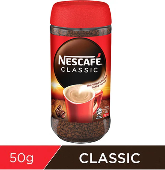 Nestle Nescafé Classic Coffee, 50g is the perfect choice for coffee lovers who enjoy a bold, rich, and energizing start to their day. Crafted from carefully selected high-quality Robusta coffee beans, this classic blend is expertly medium-dark roasted to deliver the strong taste and intense aroma NESCAFÉ is famous for.