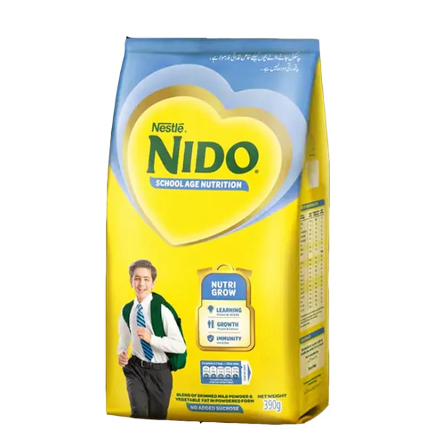 Support your child’s growth, immunity, and learning with Nestle NIDO Growth, 390g – enriched with essential vitamins, minerals, and milk proteins for school-age kids.