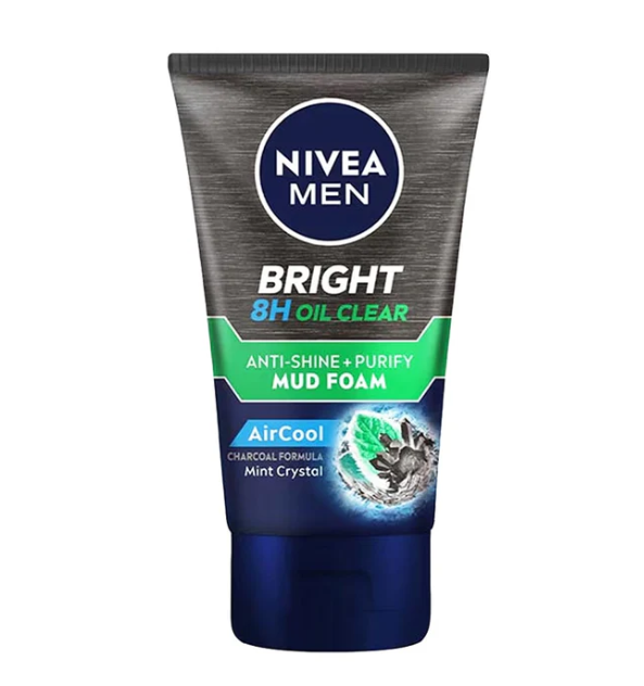 Experience the ultimate oil control with Nivea Men Bright 8H Oil Clear Anti-Shine + Purify Mud Foam (100ml) — the ideal face wash for men who want clean, bright, and refreshed skin all day long.