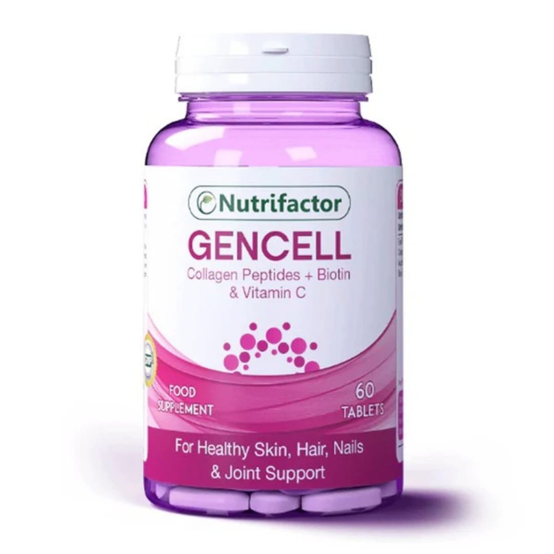 Buy Nutrifactor Gencell – a Collagen, Vitamin C, and Biotin formula that supports skin elasticity, hair strength, nail health, and joint flexibility.