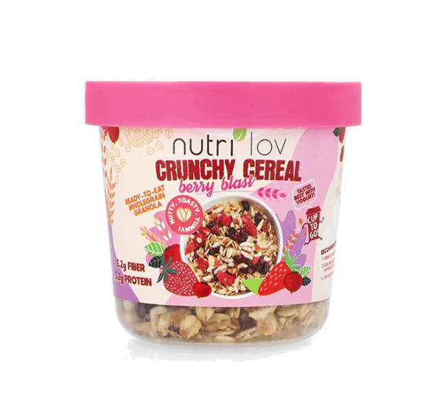 Start your day the deliciously healthy way with Nutrilov Crunchy Cereal Berry Blast Cup, 70g — a baked wholegrain granola packed with fruity flavor, protein, and fiber. Designed for modern, on-the-go lifestyles, this crunchy cereal comes in a fun, reusable cup that makes breakfast and snacking easier than ever.