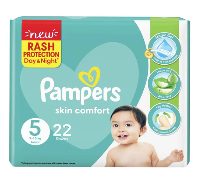 Give your growing baby superior comfort and reliable protection with Pampers Skin Comfort Diapers Size 5 (Junior), 22 Ct. Specially designed for active babies, these diapers provide long-lasting dryness while keeping your baby’s delicate skin soft and healthy.