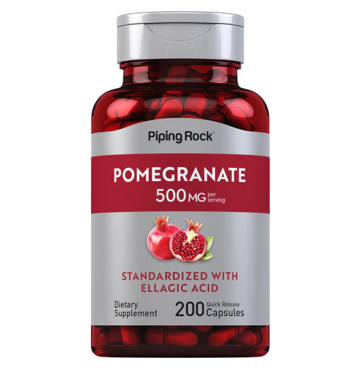 Piping Rock Pomegranate Extract Standardized With Ellagic Acid 500mg – 200 Capsules is a premium dietary supplement designed to deliver the natural antioxidant power of pomegranate in a convenient, easy-to-take capsule form. Sourced from the nutrient-rich fruit of the Punica granatum tree, native to the Middle East, this high-quality formula provides a potent 500 mg of pomegranate extract per serving, standardized to contain 40% Ellagic Acid — a naturally occurring phenol known for its strong antioxidant properties.