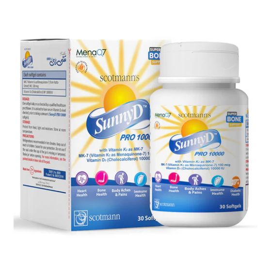 Scotmann SunnyD Pro 10,000 (Vitamin D3 + K2) delivers a powerful blend of Vitamin D3 and K2 to support strong bones, heart health, and immunity. With high potency and fast-absorbing softgels, it’s an ideal daily supplement for overall wellness.