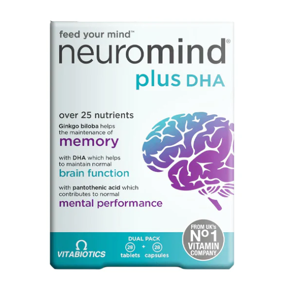 Support your brain health and mental performance with Vitabiotics Neuromind Plus DHA, a scientifically developed dual-pack formula combining advanced micronutrients with high-purity Omega-3 DHA. Specially formulated by Vitabiotics, the UK’s No.1 vitamin company, this comprehensive supplement provides targeted nutritional support for brain function, cognitive performance, and the nervous system.